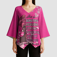 Add a chic touch to your wardrobe with the African Women Kimono Sleeve Blouse Black Beautiful Brave and Bressed - Pink Color from Wonder Print Shop. Designed for versatility, this V-neck blouse features flowing kimono-style sleeves and a relaxed fit — perfect for both casual and dressy occasions. Crafted with premium polyester fabric, it offers a soft, lightweight feel for all-day comfort.