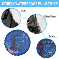 African Women Spare Tire Cover Black Beautiful Brave and Bressed - Blue Color