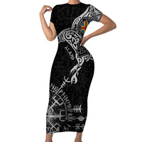 Aland Viking Ravens Short Sleeve Bodycon Dress Vegvisir Runes Pattern