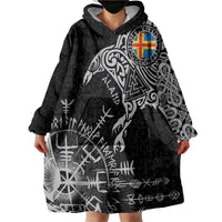 Aland Viking Ravens Wearable Blanket Hoodie Vegvisir Runes Pattern