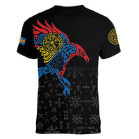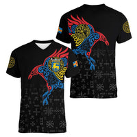 Aland Vikings Culture Women V-Neck T-Shirt Norse Mythology Raven Tattoo LT17