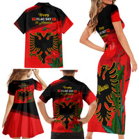 Albania Flag Day Family Matching Short Sleeve Bodycon Dress and Hawaiian Shirt Albanian Coat Of Arms With Red Poppy
