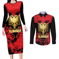 Albania Independence Day Couples Matching Long Sleeve Bodycon Dress and Long Sleeve Button Shirt Dita e Pavaresise Map Grunge Style