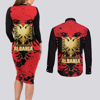 Albania Independence Day Couples Matching Long Sleeve Bodycon Dress and Long Sleeve Button Shirt Dita e Pavaresise Map Grunge Style LT14