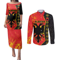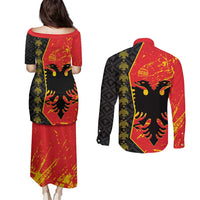 Albania Independence Day Couples Matching Puletasi and Long Sleeve Button Shirt Albanian Proud - Flag Color