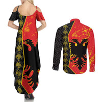 Albania Independence Day Couples Matching Summer Maxi Dress and Long Sleeve Button Shirt Albanian Proud - Flag Color LT14