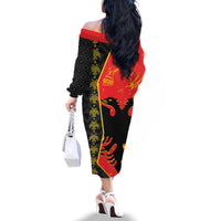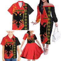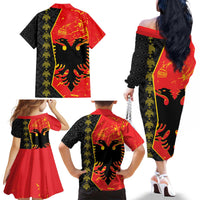 Albania Independence Day Family Matching Off The Shoulder Long Sleeve Dress and Hawaiian Shirt Albanian Proud - Flag Color