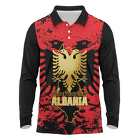 Albania Independence Day Long Sleeve Polo Shirt Dita e Pavaresise Map Grunge Style