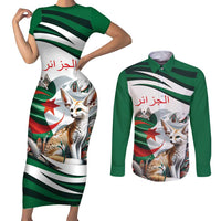Algeria Fennec Fox Personalized Couples Matching Short Sleeve Bodycon Dress and Long Sleeve Button Shirt with Algerian Culture and Nature