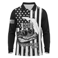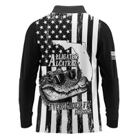 Alligator Alcatraz Long Sleeve Polo Shirt Cool Gator Everglades USA Grunge Flag