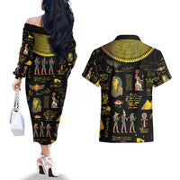 Ancient Egypt and Hieroglyphs Couples Matching Off The Shoulder Long Sleeve Dress and Hawaiian Shirt LT9