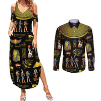 Ancient Egypt and Hieroglyphs Couples Matching Summer Maxi Dress and Long Sleeve Button Shirt