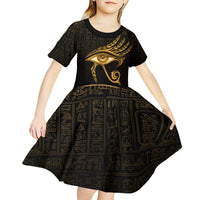 Ancient Egypt Eye of Horus Kid Short Sleeve Dress Gold Intricate Feathers
