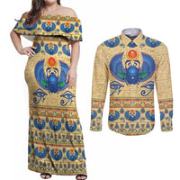 Ancient Egypt Scarab Beetle Couples Matching Off Shoulder Maxi Dress and Long Sleeve Button Shirt