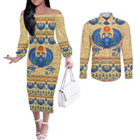Ancient Egypt Scarab Beetle Couples Matching Off The Shoulder Long Sleeve Dress and Long Sleeve Button Shirt