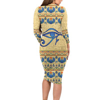 Ancient Egypt Scarab Beetle Long Sleeve Bodycon Dress