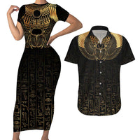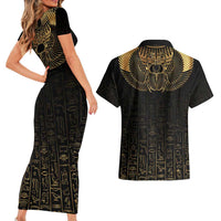 Ancient Egypt Scarab Couples Matching Short Sleeve Bodycon Dress and Hawaiian Shirt Black Gold