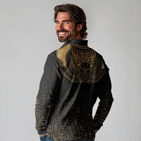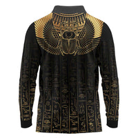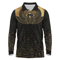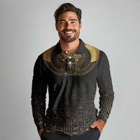 Ancient Egypt Scarab Long Sleeve Polo Shirt Black Gold LT7