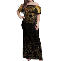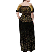 Ancient Egypt Scarab Off Shoulder Maxi Dress Black Gold