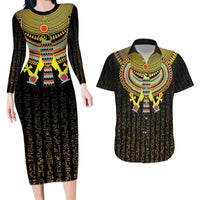Ancient Egyptian Couples Matching Long Sleeve Bodycon Dress and Hawaiian Shirt Symbol of Horus The Falcon God