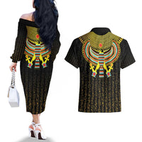 Ancient Egyptian Couples Matching Off The Shoulder Long Sleeve Dress and Hawaiian Shirt Symbol of Horus The Falcon God