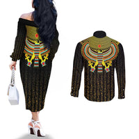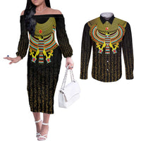 Ancient Egyptian Couples Matching Off The Shoulder Long Sleeve Dress and Long Sleeve Button Shirt Symbol of Horus The Falcon God