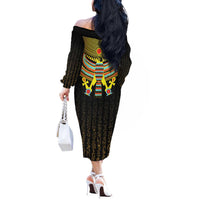 Ancient Egyptian Off The Shoulder Long Sleeve Dress Symbol of Horus The Falcon God