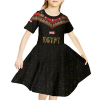 Ankh Eye of Horus Egypt Kid Short Sleeve Dress with Ancient Black Gold Hieroglyph Spirit
