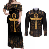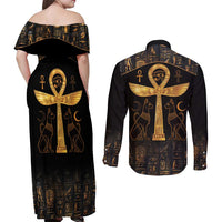 Ankh with Eye of Horus Couples Matching Off Shoulder Maxi Dress and Long Sleeve Button Shirt Ancient Egypt Culture LT9