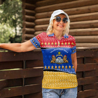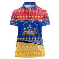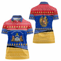 Armenia Christmas Women Polo Shirt with Shnorhavor Surb Tsnund Lions Flag Colors and Coat of Arms
