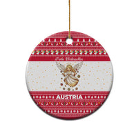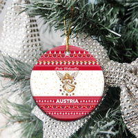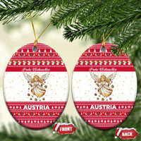 Austria Christmas Ceramic Ornament with Frohe Weihnachten Angel Design and Red White Holiday