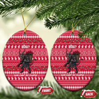 Austria Christmas Ceramic Ornament with German Text Red Pattern and Festive Lights