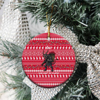 Austria Christmas Ceramic Ornament with German Text Red Pattern and Festive Lights TS04