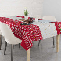 Austria Christmas Tablecloth with Frohe Weihnachten Angel Design and Red White Holiday