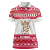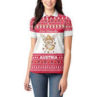 Austria Christmas Women Polo Shirt with Frohe Weihnachten Angel Design and Red White Holiday