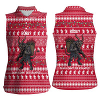 Austria Christmas Women Sleeveless Polo Shirt with German Text Red Pattern and Festive Lights TS04