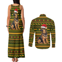 Awesome German Shepherd Dog Santa Claus Christmas Couples Matching Tank Maxi Dress and Long Sleeve Button Shirt Xmas Holiday Patterns