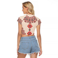 Baba Marta Day Martenitsa Raglan Cropped T Shirt Traditional Bulgarian Embroidery