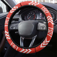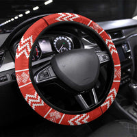Bahrain Christmas Steering Wheel Cover with Santa Riding Camel Red Geometric Pattern and Festive Design