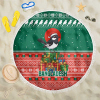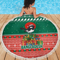 Bangladesh Christmas Beach Blanket with Black-Capped Bird Gift Stack and Green Red Snowflake Pattern TS04