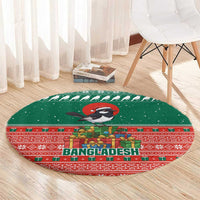 Bangladesh Christmas Round Carpet with Black-Capped Bird Gift Stack and Green Red Snowflake Pattern