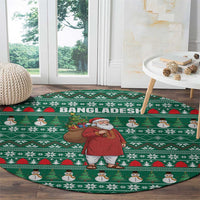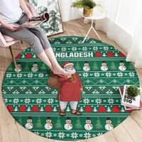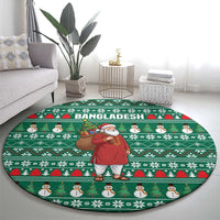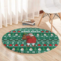 Bangladesh Christmas Round Carpet with Santa Claus in Traditional Outfit Snowman and Tree Pattern