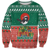 Bangladesh Christmas Sweatshirt with Black-Capped Bird Gift Stack and Green Red Snowflake Pattern