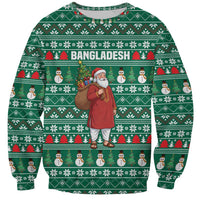 Bangladesh Christmas Sweatshirt with Santa Claus in Traditional Outfit Snowman and Tree Pattern