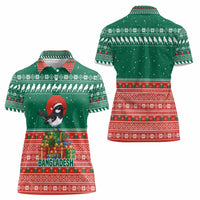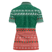 Bangladesh Christmas Women Polo Shirt with Black-Capped Bird Gift Stack and Green Red Snowflake Pattern TS04