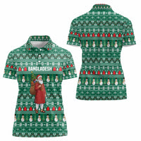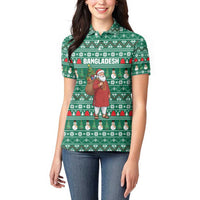 Bangladesh Christmas Women Polo Shirt with Santa Claus in Traditional Outfit Snowman and Tree Pattern