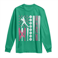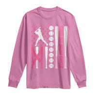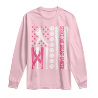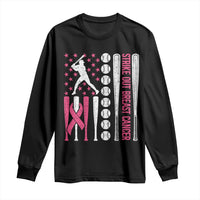 Baseball Breast Cancer Long Sleeve Shirt Pink Ribbon Strike Out Breast Cancer American Flag TS10