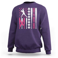 Baseball Breast Cancer Sweatshirt Pink Ribbon Strike Out Breast Cancer American Flag TS10