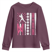 Baseball Breast Cancer Youth Sweatshirt Pink Ribbon Strike Out Breast Cancer American Flag TS10