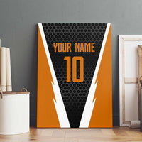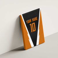 Bass Fishing Canvas Wall Art Jumping Largemouth Fish on Black Hex Pattern and Orange White Lightning Accents